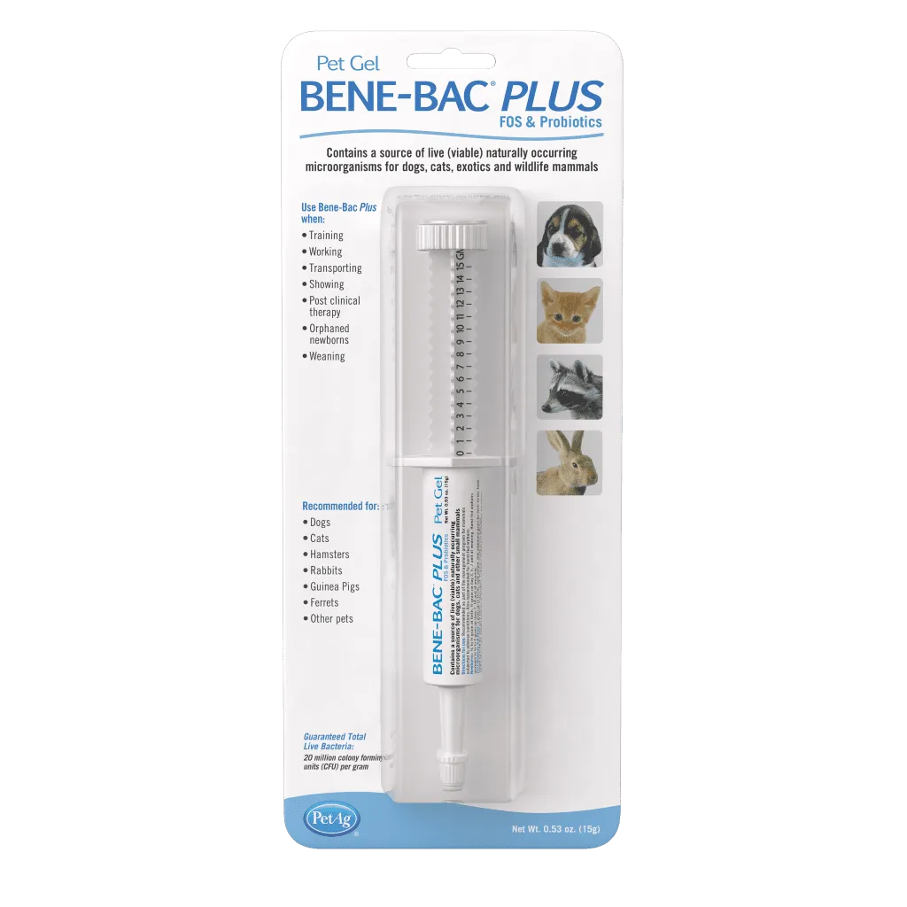 Bene-Bac® Gel is recommended any time an animal experiences changing nutritional or environmental conditions. The palatable gel contains concentrated FOS and live, naturally occurring microorganisms found in the intestinal tract of small mammals.