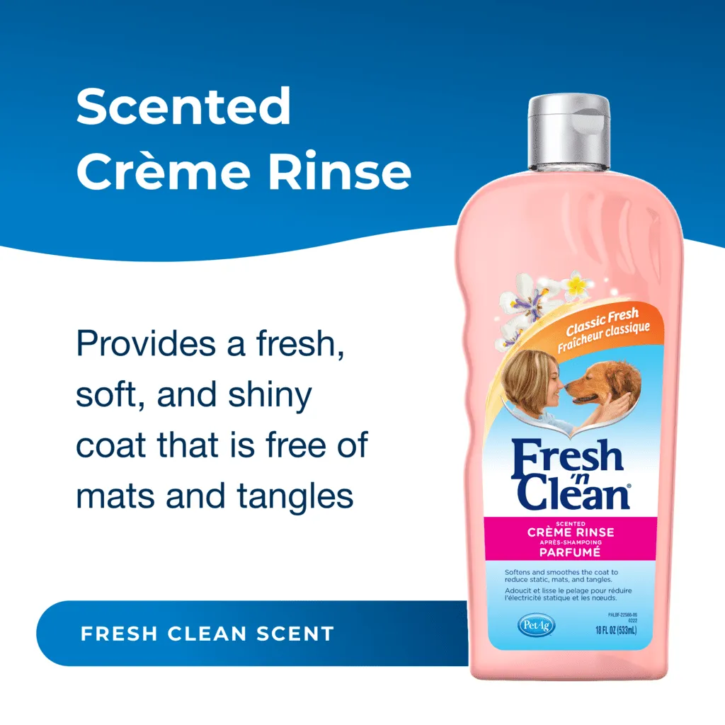 A critical step in the grooming process is to lubricate, smooth, soften, and relax the coat to reduce static and mats/tangles while making comb-through easy. Fresh clean scent lasts up to 2 weeks.