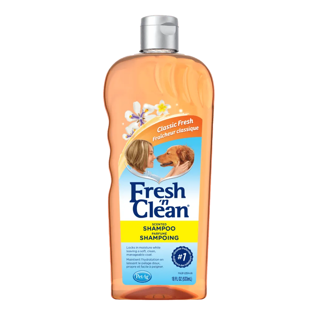 Keep your dog clean and smelling fresh everyday with Fresh ‘n Clean Scented Dog Shampoo. The natural, soap-free, plant-based cleansers wash away dirt and grime. Vitamin E and soothing Aloe vera lock in moisture for a soft and manageable coat and soft skin. Fresh ‘n Clean’s signature, long-lasting Classic Fresh scent keeps your dog smelling fresh up to two weeks.