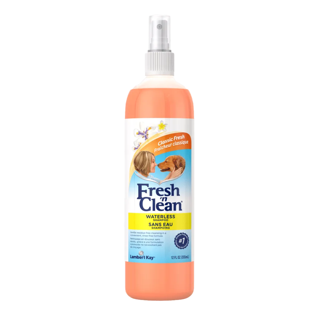 Fresh ‘n Clean Waterless Shampoo is a convenient, rinse-free, anti-tangle between bath spray perfect for quick clean-ups. Plant-based cleansing agents gently lift away dirt and grime, while aloe vera moisturizes the skin and coat, and long-lasting Classic Fresh Scent fragrance refreshes the coat for up to 2 weeks.