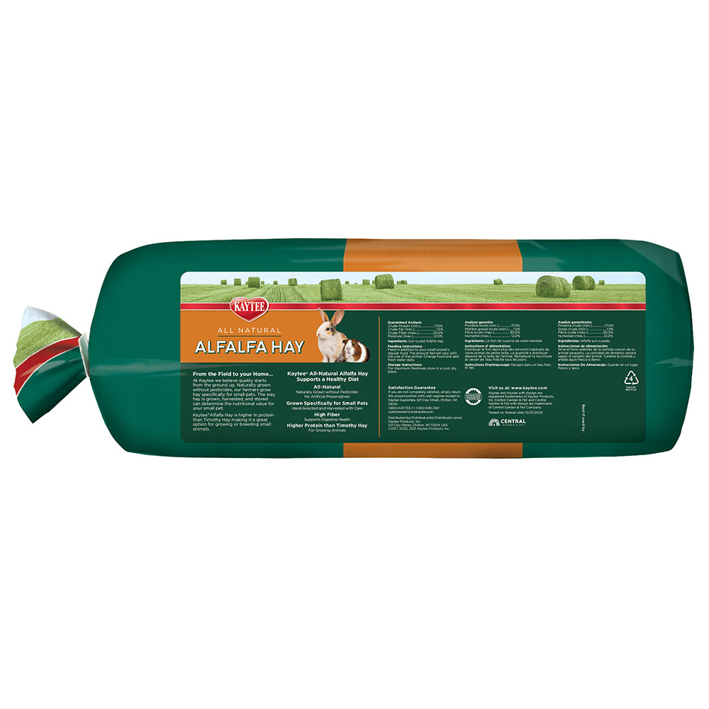 Kaytee Alfalfa Mini Bales are made with sun-cured alfalfa and are a great fiber source for small animals or natural treat that complements any Kaytee food.