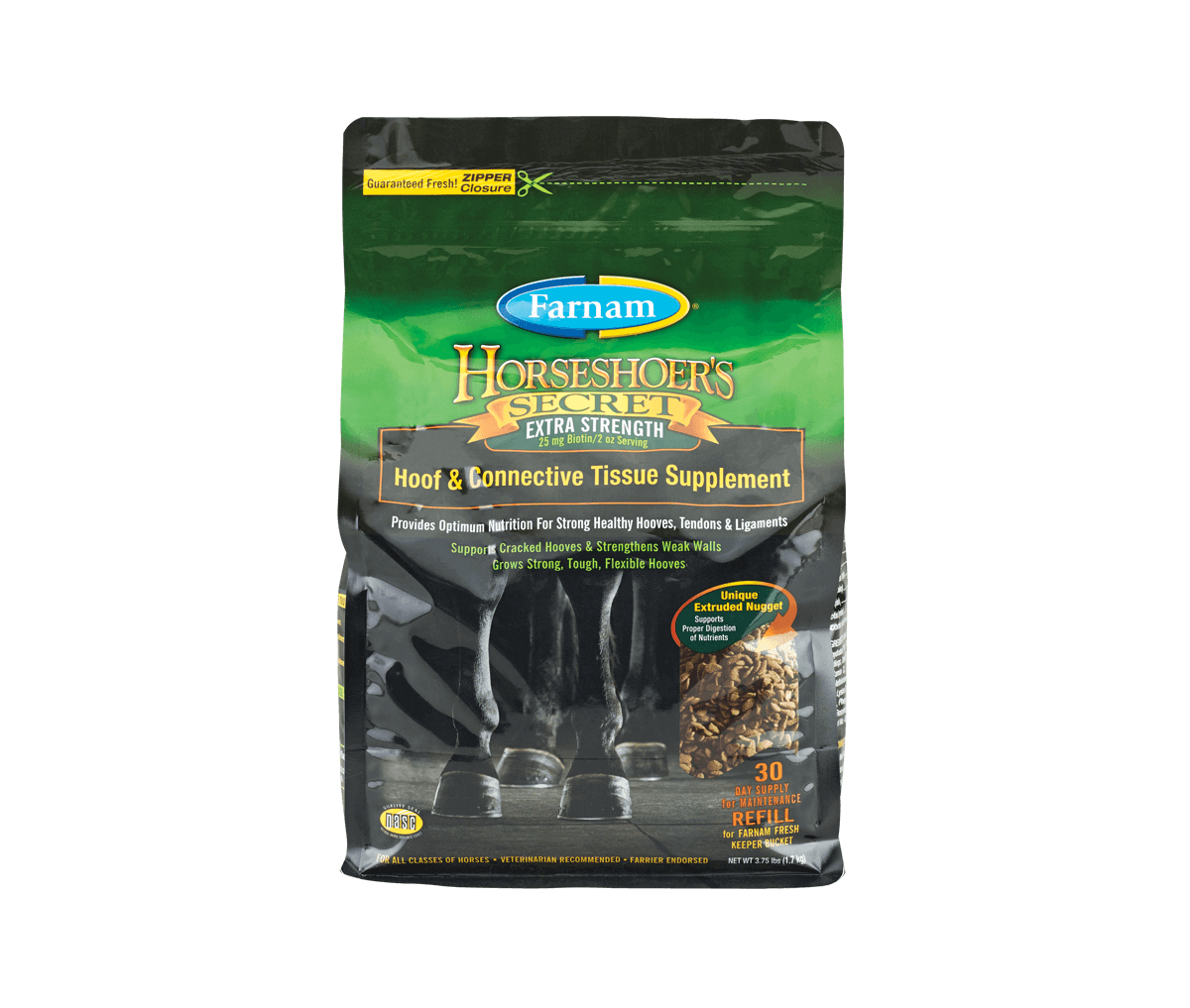 - Strong hooves, healthy tendons and ligaments are essential if you and your horse are going to accomplish your goals. Now you can feel confident you’re providing vital, nutritional support for your horse’s foundation with Farnam Horseshoer’s Secret Extra Strength Hoof and Connective Tissue Supplement. This formula is ideal for all horses, especially those that need more support than others due to a genetic predisposition, environmental or rigorous performance demands. When your horse needs extra support, trust the brand recommended by farriers and veterinarians.
